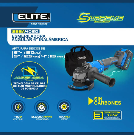 Esmeriladora inalámbrica desde 4 1/2" - 6” sin escobillas ELITE.