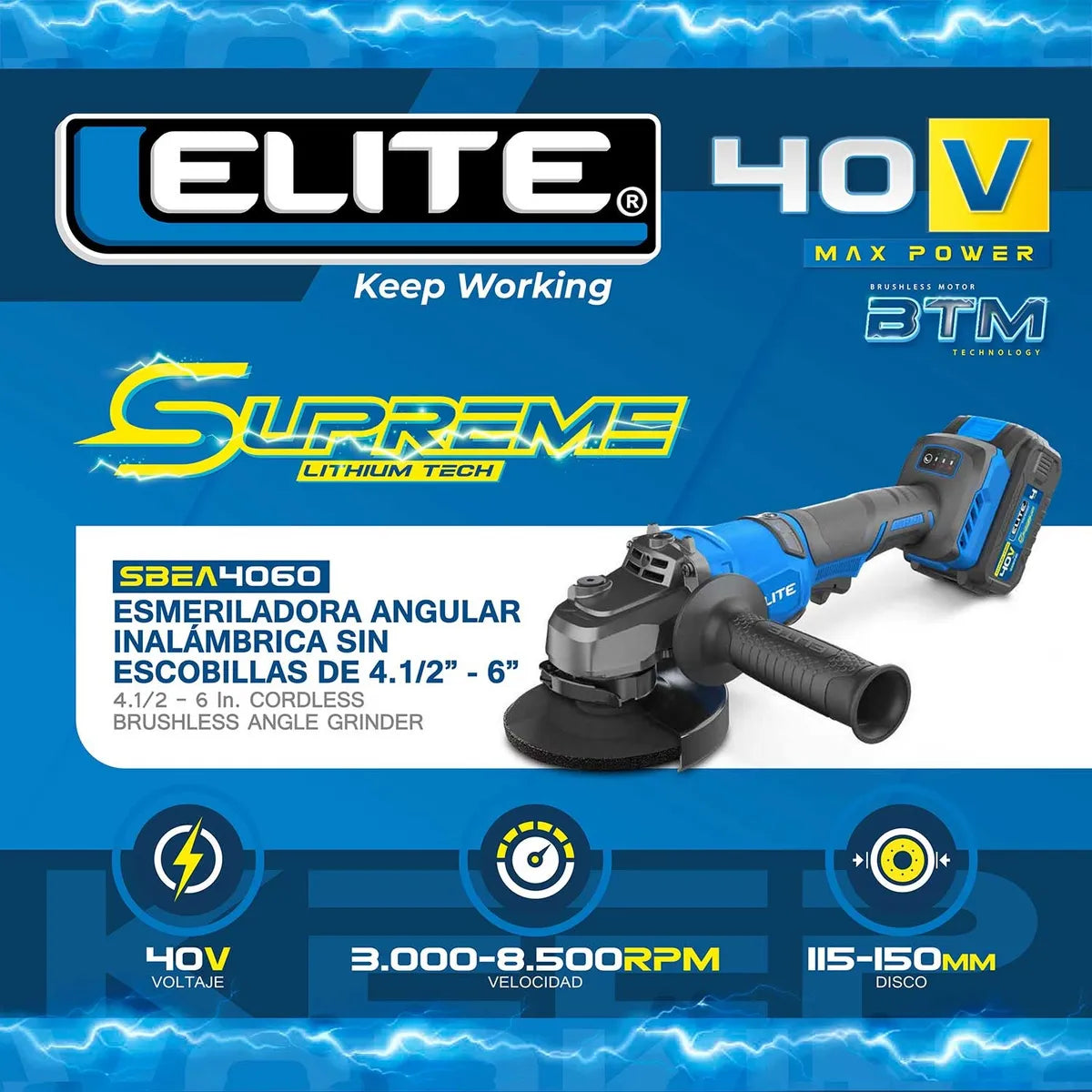 Esmeriladora Angular Inalambrica 4-1/2-6" 40V Brushless Elite SBEA4060