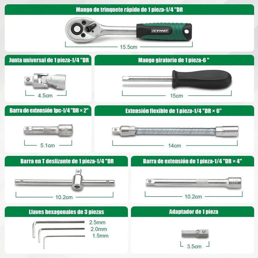 Juego de herramientas Autocle Mando 1/4" 53 piezas Dewinner DW-53JT