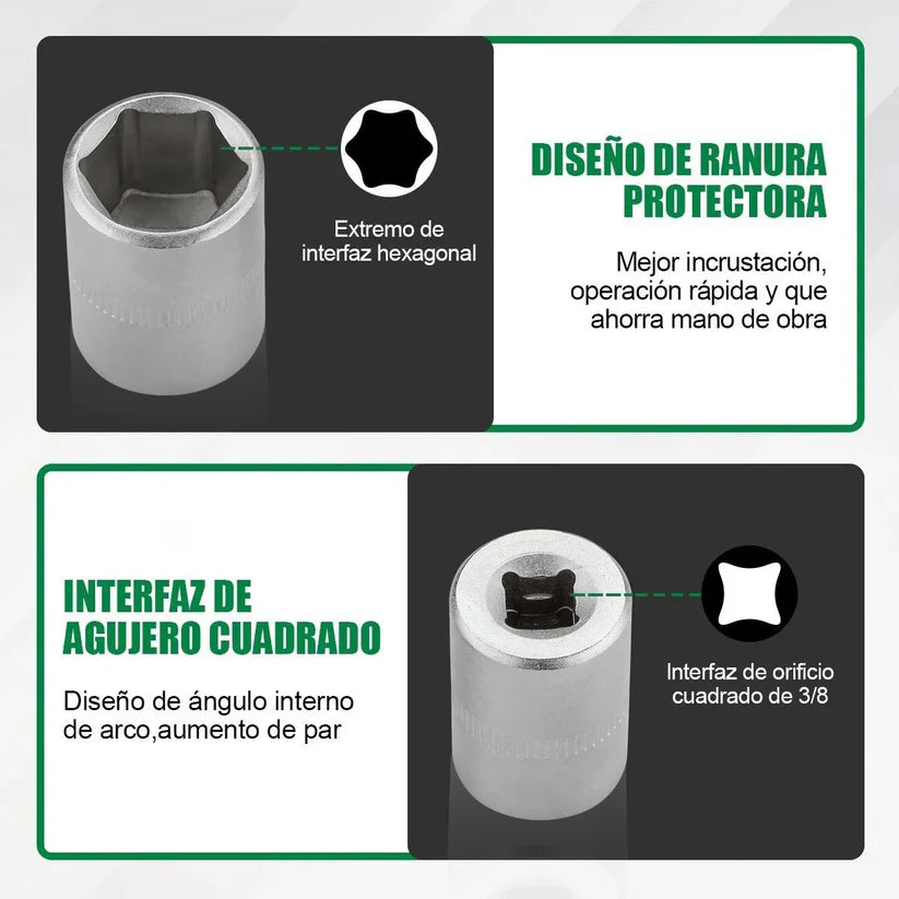 - 7 dados mando 1/4" largos: 6, 7, 8, 10, 12, 13, 14 mm