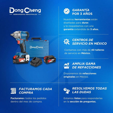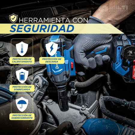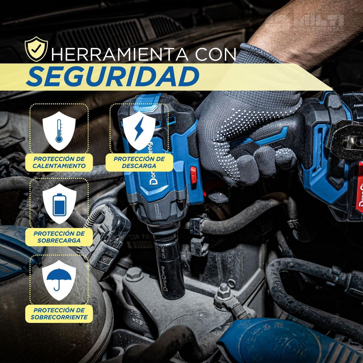 La llave de impacto DCP-B488-EM es una herramienta diseñada para proporcionar un alto torque en tareas de fijación y desmontaje de pernos y tornillos. Su motor de alta potencia ofrece un rendimiento consistente y eficaz para trabajos exigentes lo que la hace adecuada para aplicaciones automotrices, de construcción y mantenimiento industrial.