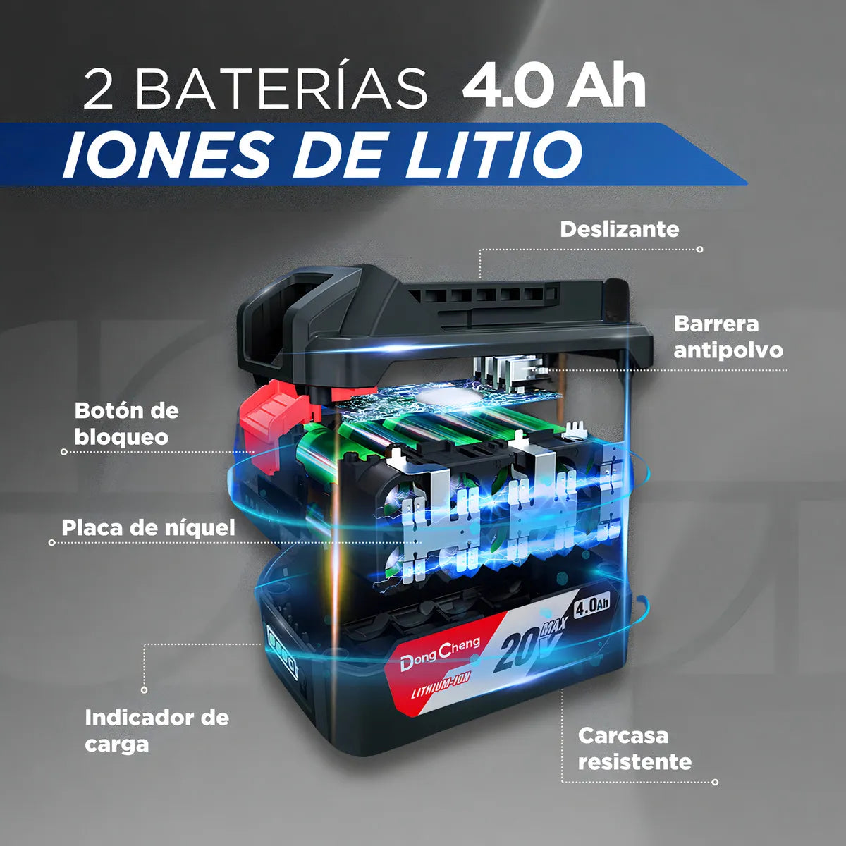 - Motor sin escobillas, de alta eficiencia, potente y duradero.