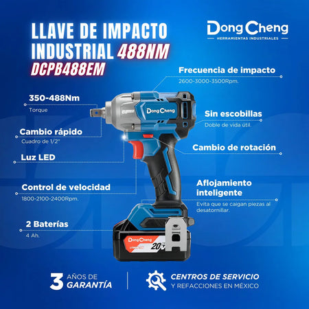 Llave De Impacto Inalambrica 20v 1/2" 488Nm Brushless DongCheng DCPB488EM