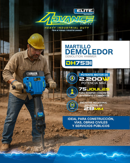 Martillo Demoledor Hex 2,200w 110V 75J 31Kg Elite DH7531