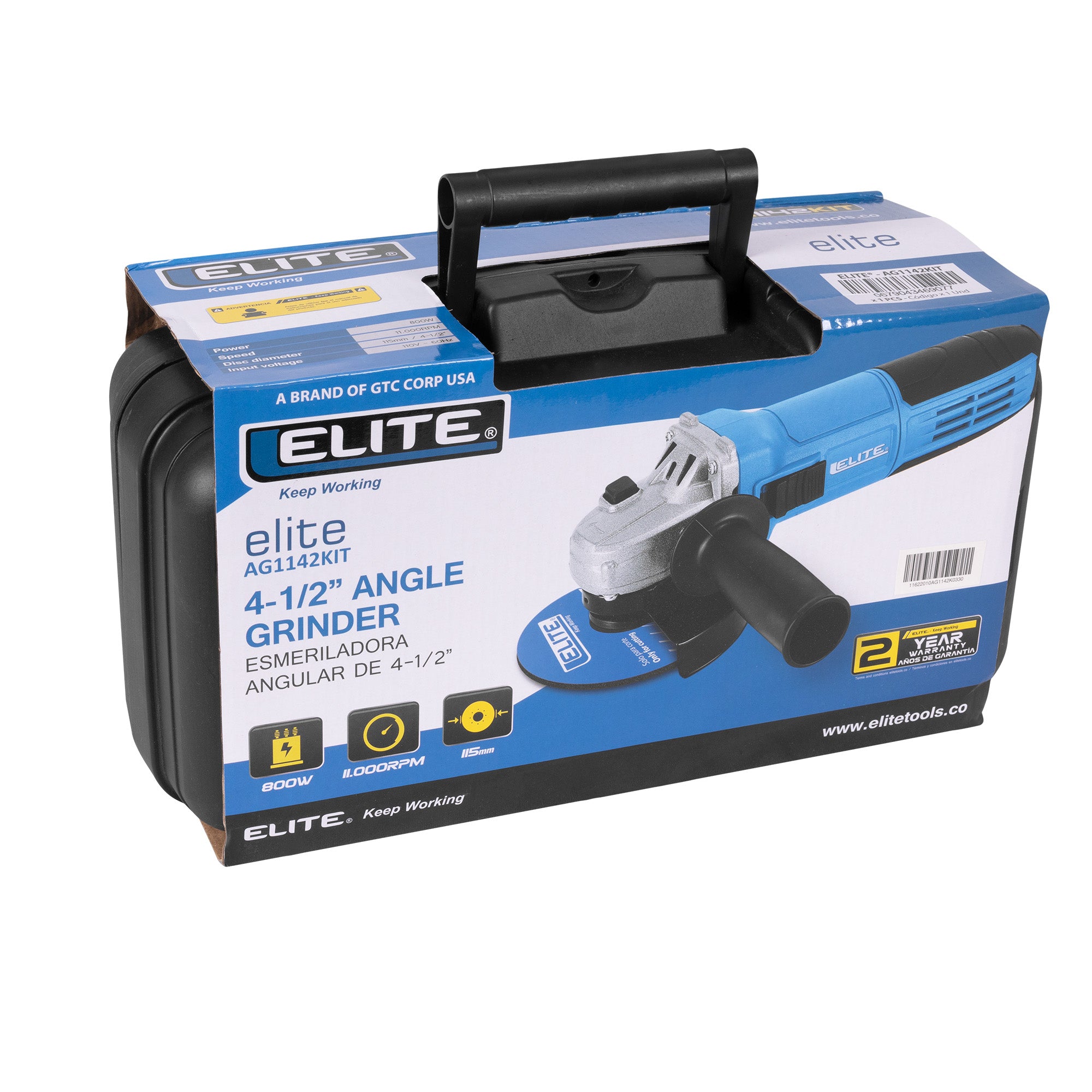 Mini Esmeriladora Angular 4-1/2" 800W Profesional + Accesorios Elite AG1142KIT